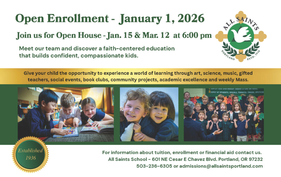 ALL SAINTS SCHOOL is a Pre-Kindergarten through Eighth grade Catholic school in the heart of Portland’s historic Laurelhurst neighborhood. The mission of All Saints School is to cultivate a faith-filled community, and in partnership with parents, inspire students to be lifelong learners who are responsible citizens committed to the values of Christ.